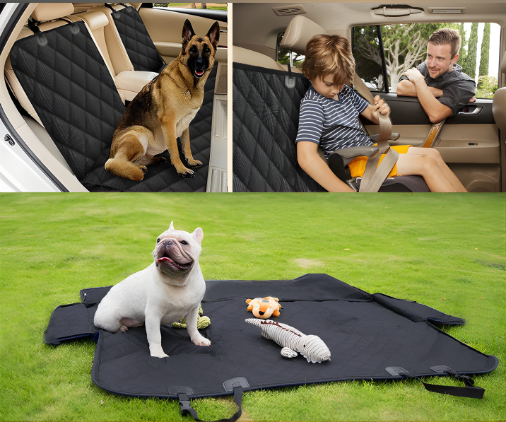Keep your car clean and safe thanks to its waterproof, non-slip design that fits most vehicles. Provides comfort for your pet and prevents stains from kids or spills, so you can travel worry-free. 🐾